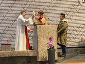 Frau Ganser und Herr Wirth werden, die in der Vorabendmesse von uns ausgesandte Kerze, am Palmsonntag um 17 Uhr der evang. Gemeinde übergeben. Die für uns vorgesehene Osterkerze wird von der evang. Gemeinde in der Vorabendmesse zu Palmsonntag an uns übergeben.