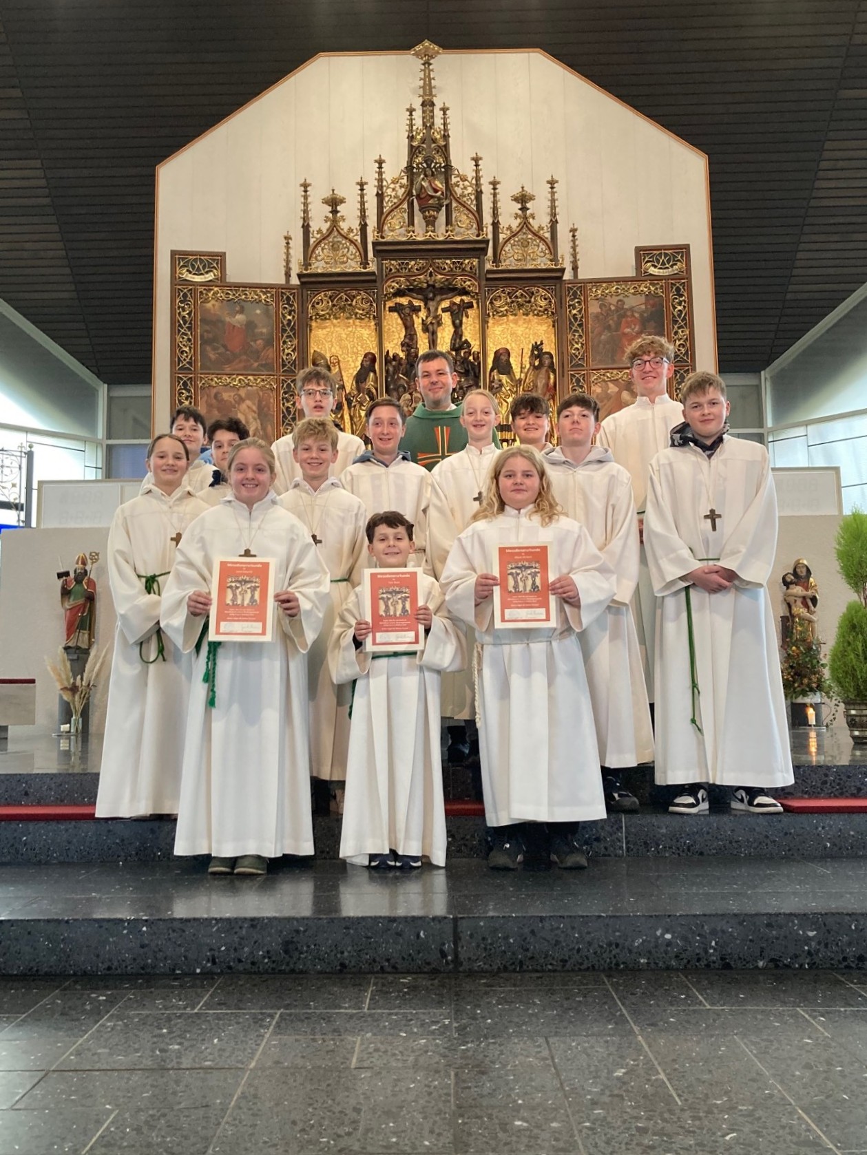 Am Sonntag, dem 16. November 2025, wurden Lara, Maya und Tom feierlich in die Messdienergruppe aufgenommen. Herzlich willkommen im Team!