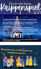 Für das Krippenspiel an Heiligabend suchen wir Kinder, die Lust und Zeit haben, mitzumachen.