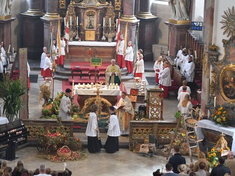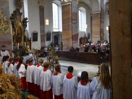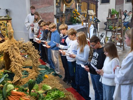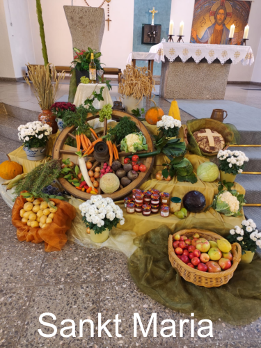 In der Stadt feiern wir wegen dem 3.Oktober und den Herbstferien das Erntedankfest schon morgen. Die Familie Fautsch und unser Küster Robert Tauchmann waren etliche Stunden im Einsatz, um die Kirche wieder ganz toll herzurichten. Morgen feiern wir einen festlichen Gottesdienst um 11 Uhr mit der Einführung von 12 neuen Messdienern und musikalischer Gestaltung einer Jazzmesse durch einen extra dafür ins Leben gerufenen Projektchor