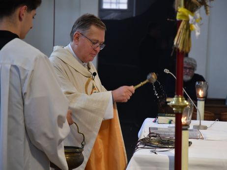 Ein besonderes Erlebnis war der heutige Gottesdienst in der Stadtpfarrkirche von Fulda. Der Gottesdienst wurde im Byzantinischen Ritus gefeiert und Bischof Bohdan Dzyurakh der Apostolische Exarch des byzantinischen Ritus für Deutschland und Skandinavien spendete die Diakonenweihe. Ivan Kolodii, der aus der Ukraine stammt, hat in den letzten drei Jahren seine Ausbildung zum Pastoralreferenten im Bistum Fulda gemacht. Sein Dienstvorgesetzter ist Stadtpfarrer Stefan Buß. Die Besonderheit wird sein, dass Ivan Kolodii in Zukunft in beiden Riten, dem byzantinischen und im römischen, Dienst tun wird. Für den 15.3. 2026 ist ebenfalls in der Stadtpfarrkirche die Priesterweihe geplant. Neben vielen ukrainischen Priestern konzelebrierte auch Stadtpfarrer Stefan Buß. Er dankte am Ende des Bischof für die beindruckende Feier und gratulierte im Namen der Stadtpfarrei dem neuen Diakon, der weiter in der Stadtpfarrei Dienst tun wird. Der Gottesdienst wurde von einer Schola mit liturgischen Gesänge aus der byzantinischen Liturgie gestaltet.