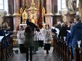 . Der Pilger der Hoffnung ist in Betlehem angekommen und bringt seine Geschenke mit den Kindern zur Krippe. Es sind das Herz, die Liebe, gute Taten, aber auch Fragen, Ängste und Wunden. Alles können wir beim göttlichen Kind ablegen. Er nimmt uns so wie wir sind. Der Kinder- und Jugendchor gestaltete unter der Leitung von Johannes Haubs den Gottesdienst.