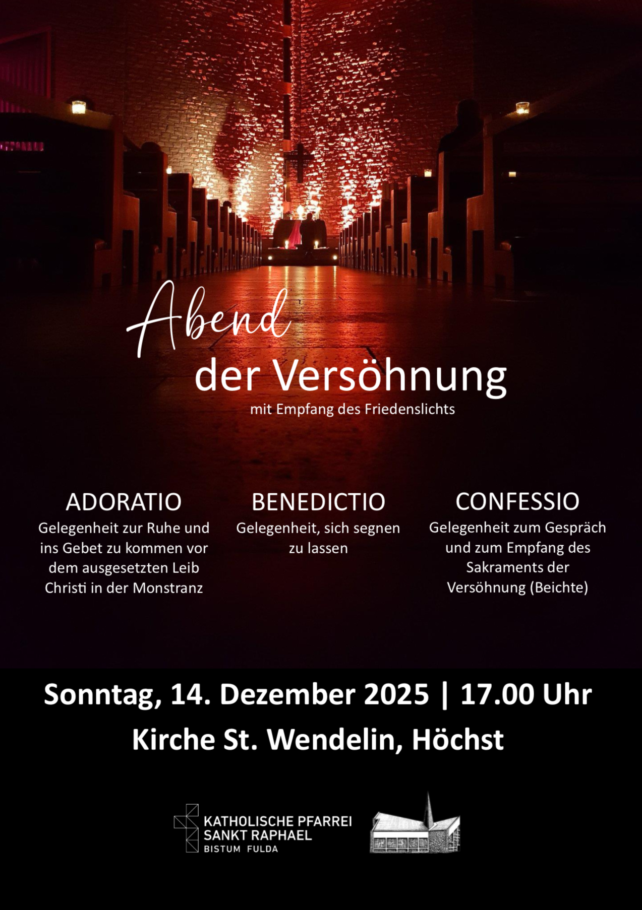 Am Sonntag, 14. Dezember 2025, um 17:00 Uhr lädt die Kirche St. Wendelin, Höchst, zu einem besonderen Abend der Versöhnung ein.