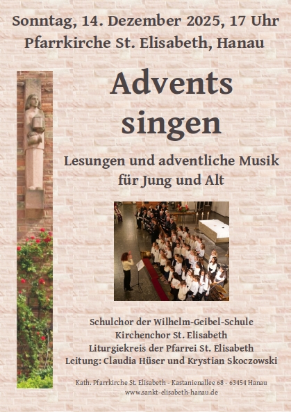 Das Motto des Dritten Adventssonntags „Freut Euch“ gab die Überschrift zu einer herausragenden gesanglichen Feier in der Kesselstädter St. Elisabethkirche mit dem Kirchenchor unter Leitung von Kantor Dr. Krystian Skoczowski sowie dem Kinderchor der Willhelm-Geibel-Schule unter Leitung von Claudia Hüser. Der Chor brachte neben klassischen Stücken auch bekannte Adventsgesänge zu Gehör. Der Kinderchor begeisterte mit bekannten, aber auch mit modernen Stücken: Die Jüngeren hatten sich genau wie die älteren Sänger schon in den wochenlangen Proben mehrmals derselben Literatur gestellt. Beeindruckend waren die fünfzig starken jungen Stimmen im Gleichklang mit dem Chor und dann auch beim gemeinsamen Singen mit den Besuchern.