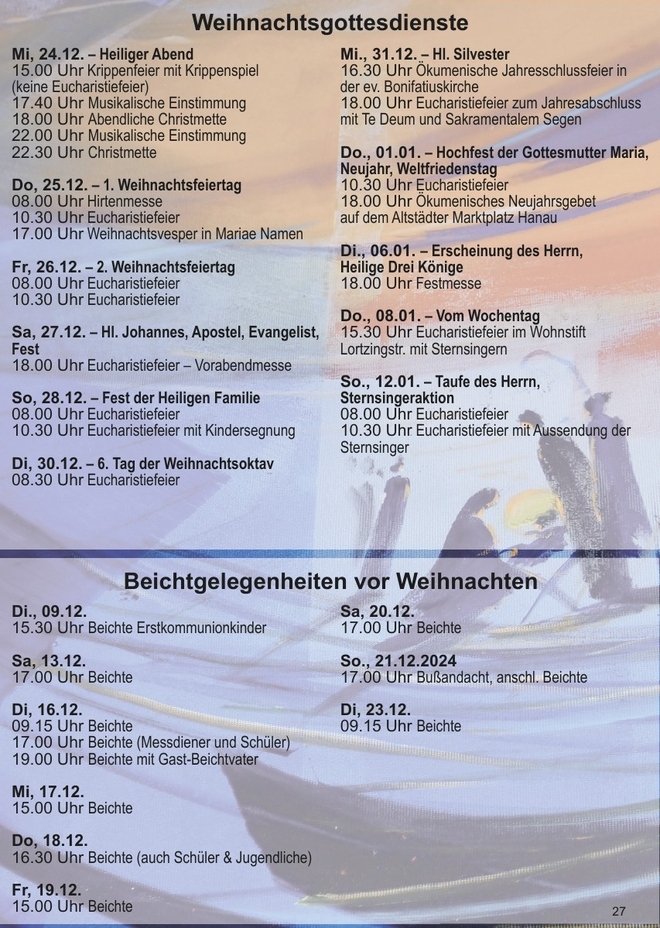 Vor den Hochfesten und in geprägten Zeiten gibt es einen eigenen Plan für die vielfältigen Beichtzeiten.