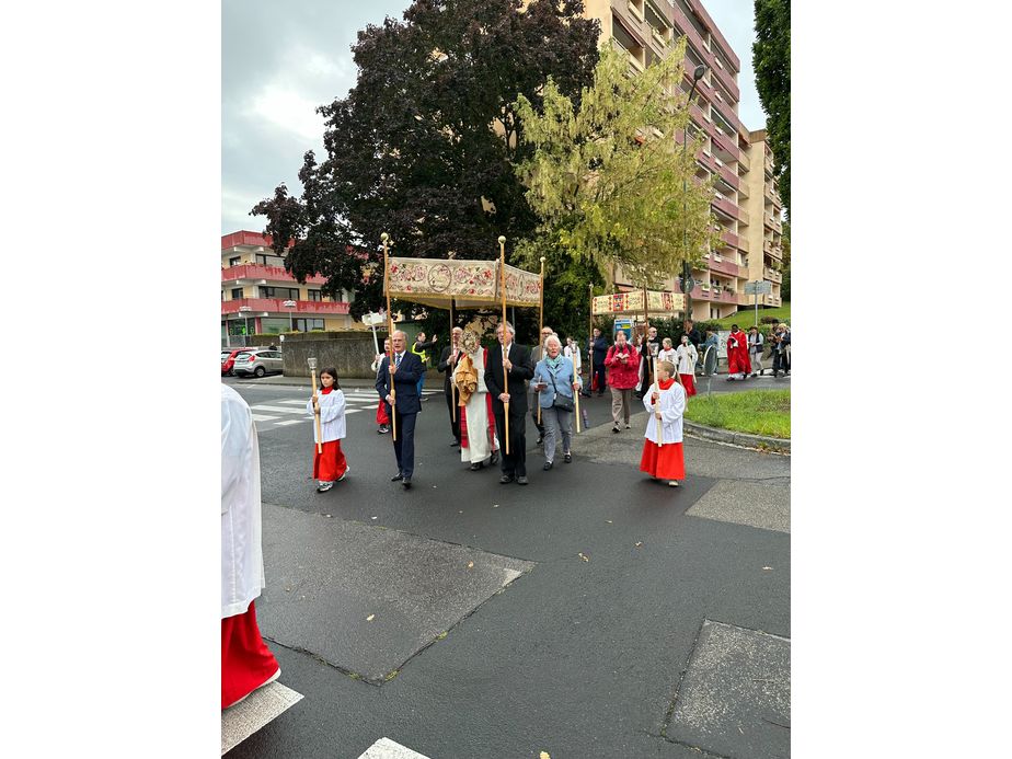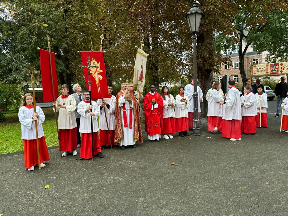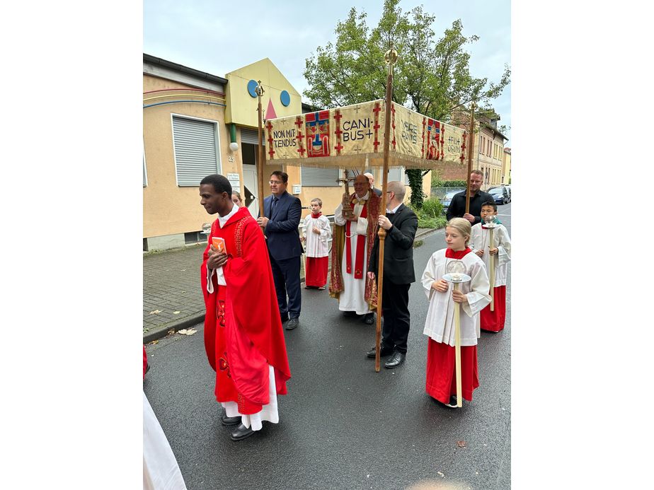 So jetzt beim Kreuzfest in Steinheim: Auch die beiden Prozessionen in Steinheim - eine mit dem Gnadenkreuz von der Kreuzkapelle am Main aus und die andere von der Großsteinheimer Marienkirche mit dem Allerheiligsten in der Monstranz wurden nicht abgesagt. Sie fanden statt. Allen Unkenrufen zum Trotz. Nach dem Treffen in der Mitte des Ortes zogen alle gemeinsam zur Festmesse in die St. Nikolauskirche und anschließendem Mittagessen und Kaffee auf dem Kirchplatz.