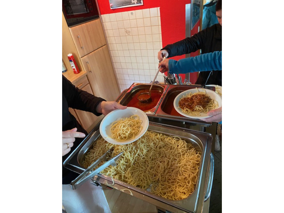 Nach der Aktion kamen alle Sternsinger wieder im Pfarrheim zusammen, um sich dort bei Essen und Getränken zu stärken.