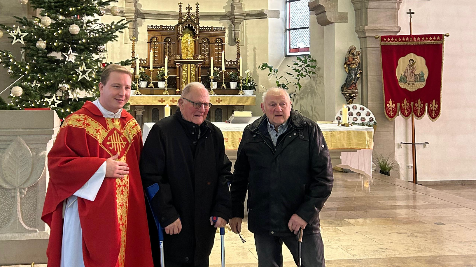 Es ist eine gute Tradition, dass die Niederkalbacher Vereine, Verbände und Gruppierungen sich zur Jahresabschlussmesse in St. Laurentius begehen. Diese traditionelle Jahresabschlussmesse war der würdige Rahmen, die beiden Brüder Manfred und Werner Reck für ihre Arbeit und Verdienste rund um St. Laurentius zu ehren.