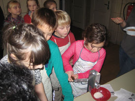 Der köstliche Geruch der beiden verschiedenen Brote lies nicht lange auf sich warten und die Kinder stürmten ungeduldig in die Backstube. Jeder wollte sofort probieren. Ob pur oder mit Butter - einfach himmlich köstlich. Zum Schluß durfte sich jedes Kommunionkind noch ein selbstgebackenes Brot mit nach Hause nehmen und mit der eigenen Familie teilen.