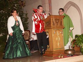 Ein Höhepunkt in jeder Messe ist die gereimte Predigt von Pfarrer Jens Clobes. Immer passend auf das jeweilige Prinzenpaar, hört hier die ganze Gemeinde aufmerksam zu und man kann sich auch das ein oder andere Schmunzeln oder gar Lachen nicht verkneifen. Hier kommt der spontane Applaus nicht zu kurz und man merkt, wie er die Menschen immer wieder aufs neue begeistern kann.