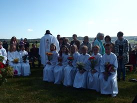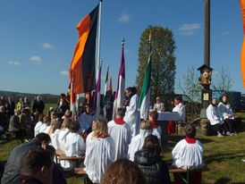 Feierlich begingen wir das Fest der Himmelfahrt Christi mit einer Messe im Freien am Bergkreuz in Niederkalbach. Bei herrlichem Sonnenschein trafen sich viele auf dem Kuckeberg, um gemeinsam den Gottesdienst zu begehen. Pfarrer Christian Schmitt zelebrierte die Messe, die musikalisch von der Blaskapelle RSM umrahmt wurde.