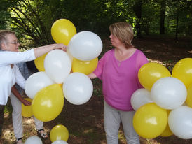 Am Sonntag, 10.07.16 wiesen nicht die Kirchenglocken den Gläubigen den Weg zur Messe, sondern weiße und gelbe Luftballons. In freier Natur versammelten sich die Gemeindemitglieder im Wald am Taufstein, um dort zu Ehren des heiligen Kilian, dessen Gedenktag der 08. Juli ist, gemeinsam Messe zu feiern. Pfarrer Christian Schmitt konnte bei herrlichstem Sonnenschein viele begrüßen und freute sich über die schöne Atmosphäre vor Ort. In seiner Predigt legte er die Unterschiede dar zwischen einem verstaubten Museumsdorf und unserer lebendigen Gemeinde St. Kilian. Weiterhin bezog er sich auf den ermutigenden Text der Tageslesung aus dem Buch Deuteronomium: „Das Wort Gottes ist ganz nah bei dir, du kannst es halten.“