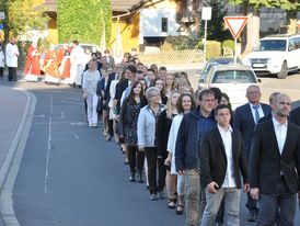 Am 24.09.2016 empfingen 39 Jugendliche aus unserer Pfarrgemeinde Sankt Kilian das Sakrament der Firmung. Begleitet von den Klängen der RSM zogen die Firmlinge gemeinsam mit ihren Paten, den Messdienern und den Geistlichen sowie den Fahnen unserer vier Gotteshäuser vom Pfarrheim kommend in die Sankt Sebastian Kirche in Mittelkalbach ein.