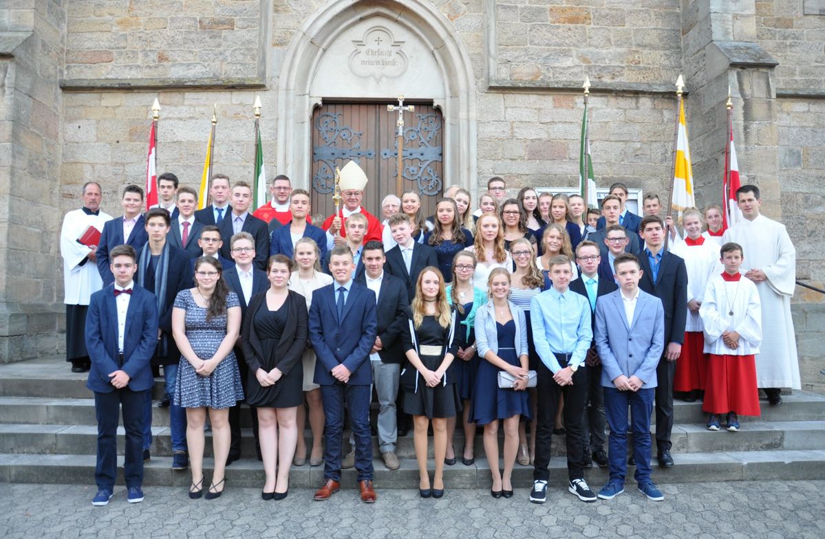 Firmspender war in diesem Jahr unser Bischof Heinz Josef Algermissen. Er wurde sowohl von Pfarrer Christian Schmitt als auch von den Firmlingen herzlich begrüßt. Mitzelebrant war außerdem noch Pfarrer Eugen Höfler. „Damit der Funke überspringt“ war der Leitspruch der diesjährigen Firmvorbereitung. Dieser sprang definitiv während der Predigt von Bischof Heinz Josef Algermissen über, der sowohl die Firmlinge als auch deren Paten und Eltern in besonderer Weise ermutigte, aus dem Glauben heraus zu leben.