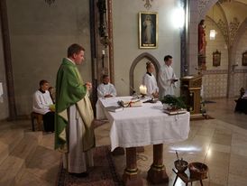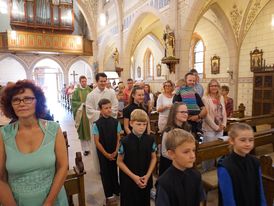 Am 11. September 2016 wurden die sechs neuen Messdiener im Gottesdienst durch den Siebten (Herrn Pfarrer Sebastian Bieber) mit Stephan Schilling in ihr neues Amt eingeführt. Es war nicht nur für die neuen Messdiener der erste Gottesdienst in der Kirche St. Sebastian, sondern auch für Pfarrer Sebastian Bieber – alle Sieben haben diesen Gottesdienst mit Bravour bestanden.