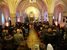 Der Abschluss dieser Krippenfeier bildete das Lied "Stille Nacht, heilige Nacht" - der große Stern und der Weihnachtsbaum leuchtete und auch viele Kinderaugen strahlten.
