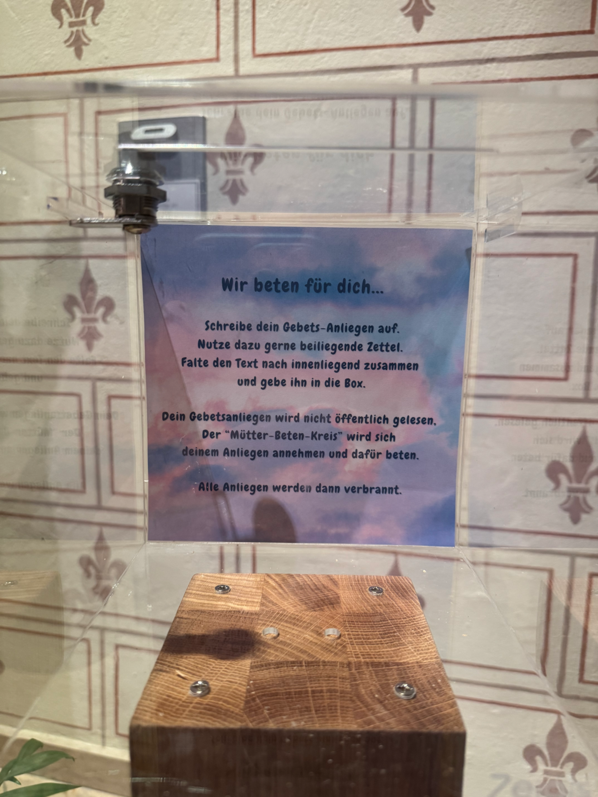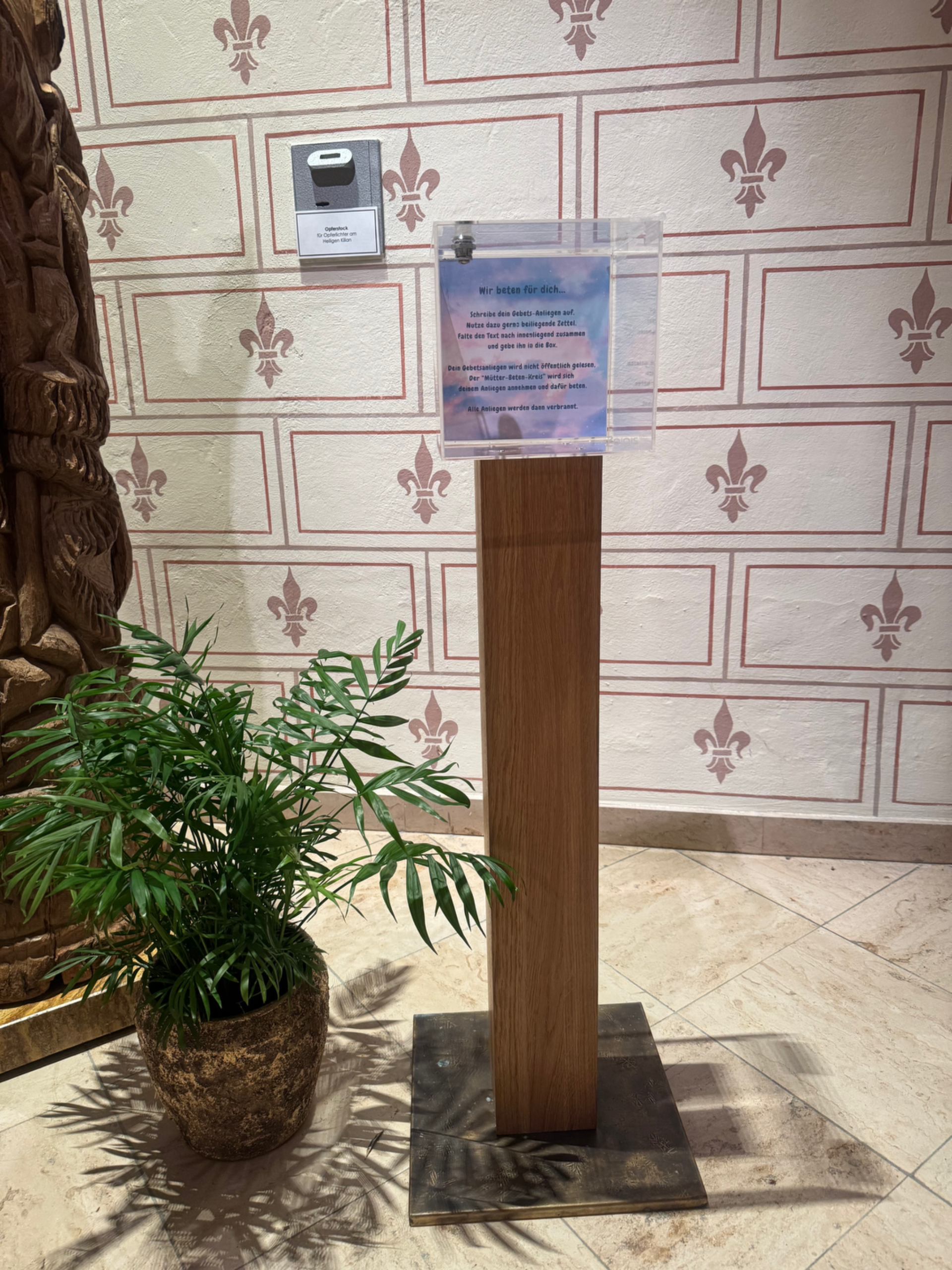 In St. Sebastian gibt es ein neues Angebot, das Raum für persönliche Anliegen und stille Bitten schafft: Es wurde im Eingangsbereich eine Gebetsbox aufgestellt, diese lädt dazu ein, Gebete, Sorgen und Wünsche anonym einzureichen. Jeder Zettel, der in die Box gelegt wird, ist ein Zeichen des Vertrauens – ein Ruf nach Trost, ein Dank, eine Bitte um Kraft.