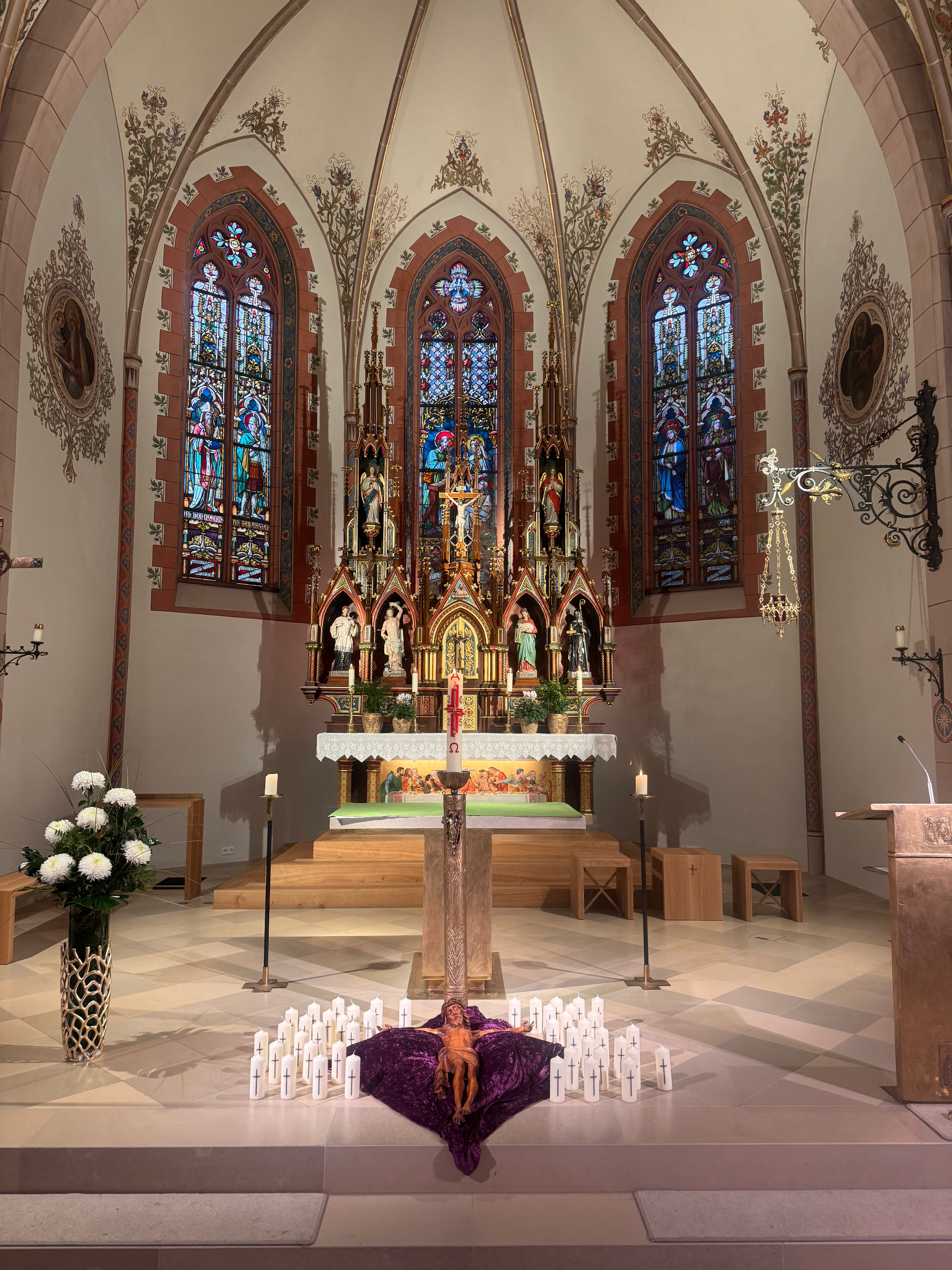 So gedachten wir heute Abend im Gottesdienst zu Allerseelen in unserer Pfarrkirche St. Sebastian unseren Verstorbenen der letzten 12 Monate.