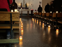 Die aufgestellten Lichter und musikalische Gestaltung verlieh der Eucharistiefeier eine besonders stimmige Atmosphäre.