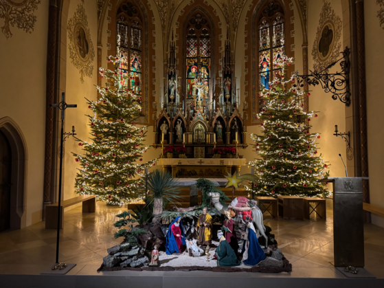 Danach rief Herodes die Sterndeuter heimlich zu sich und ließ sich von ihnen genau sagen, wann der Stern erschienen war. Dann schickte er sie nach Bethlehem und sagte: Geht und forscht sorgfältig nach, wo das Kind ist; und wenn ihr es gefunden habt, berichtet mir, damit auch ich hingehe und ihm huldige. Nach diesen Worten des Königs machten sie sich auf den Weg. Und der Stern, den sie hatten aufgehen sehen, zog vor ihnen her bis zu dem Ort, wo das Kind war; dort blieb er stehen. Als sie den Stern sahen, wurden sie von sehr großer Freude erfüllt. Sie gingen in das Haus und sahen das Kind und Maria, seine Mutter; da fielen sie nieder und huldigten ihm. Dann holten sie Ihre Schätze hervor und brachten ihm Gold, Weihrauch und Myrrhe als Gaben dar. Weil ihnen aber im Traum geboten wurde, nicht zu Herodes zurückzukehren, zogen sie auf einem anderen Weg heim in ihr Land.