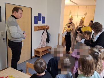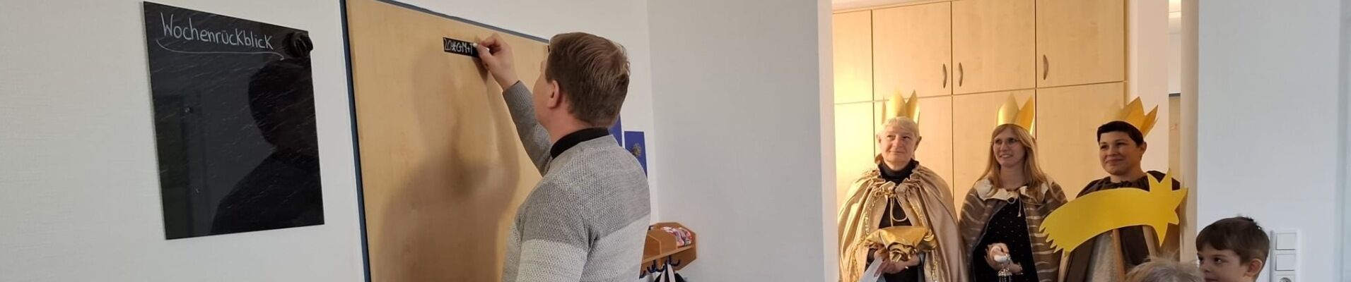 An diesem Donnerstag kündigten sich die Sternsinger an, um mit Kaplan Schöppner und Kilian, die Kinder in ihren Gruppen zu besuchen.