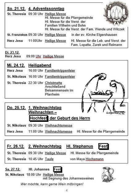 Sonntag, 21. Dezember, ab ca. 12.00 Uhr - 13.00 Uhr