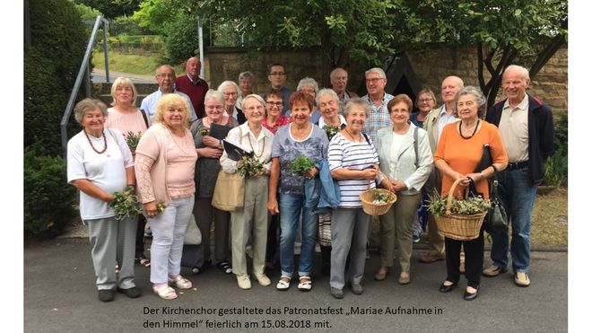 Die Mitglieder des Kirchenchores gestalten verschiedene Gottesdienste an Sonn- und Feiertagen, Mai- und Rosenkranzandachten sowie das Fronleichnamsfest mit sakralem Gesang festlich mit.