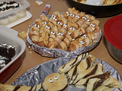 Daraufhin wurde das schaurige Buffett eröffnet, welches aus Beiträgen aller Mitglieder bestand und sowohl optisch, als auch geschmacklich sehr abwechslungsreich gestaltet war - noch einmal vielen Dank an alle Spender für die leckeren Köstlichkeiten.