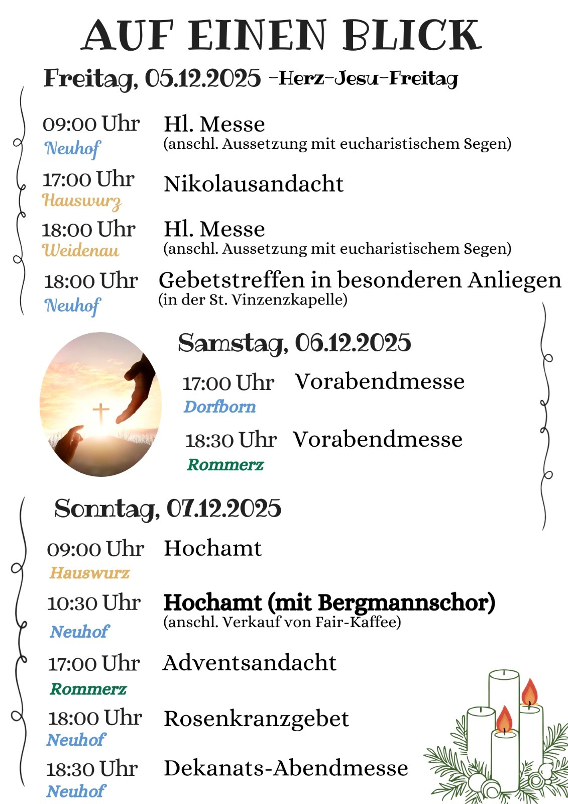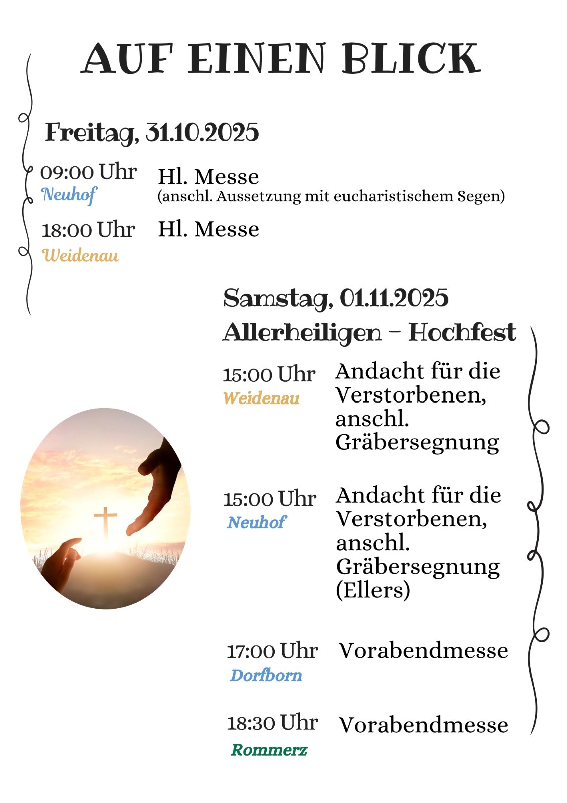 Wir freuen uns, dass Sie den Weg auf die Internetseiten der Pfarrgemeinden St. Michael Neuhof, Mariä Himmelfahrt Rommerz und St. Bartholomäus Hauswurz gefunden haben. Haben Sie viel Spaß beim Umschauen und Entdecken.