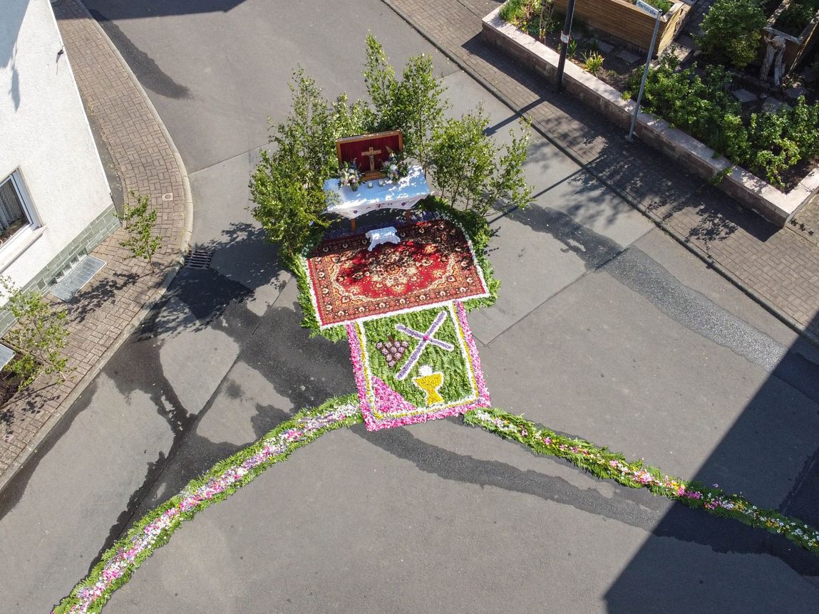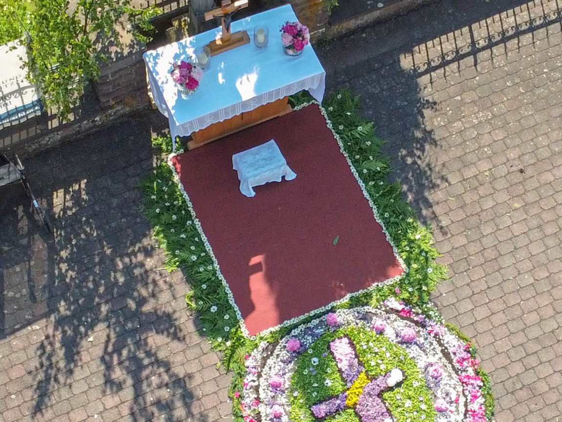 Fronleichnam 2023 in Reulbach war ein Fest der Farben. Mit gutem Wetter als stetigem Begleiter zog die Prozession durch das Dorf, musikalisch begleitet den Wallmusikanten. Herzstück waren die vier liebevoll gestalteten Altäre, die, wie jedes Jahr, mit prachtvollen Blumenteppichen geschmückt waren. Die Blütenpracht in leuchtenden Farben, von fleißigen Händen arrangiert, zog die ganze Gemeinde in ihren Bann.