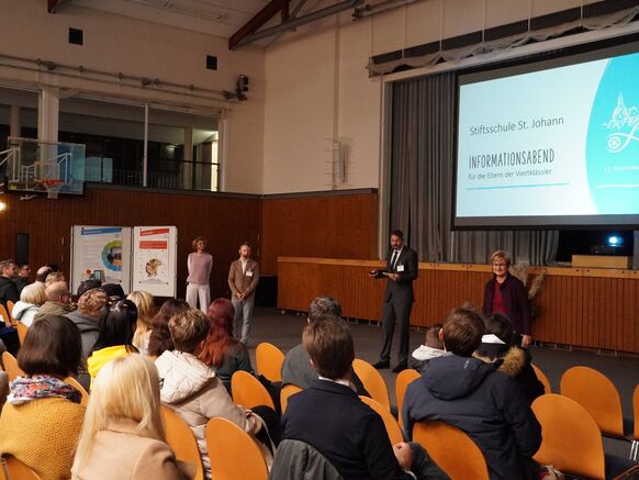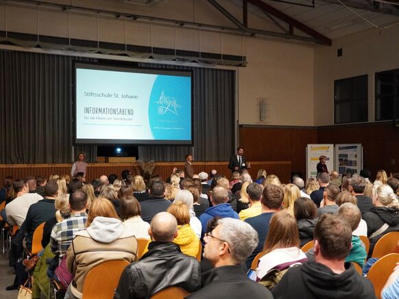 Am Dienstag, 11. November 2025 fand unser diesjähriger Elterninformationsabend statt. Rund 200 interessierte Viertklässler-Eltern waren der Einladung gefolgt, um sich in der Bonifatiushalle der Stiftsschule über die Schüleraufnahme zum Schuljahr 2026/27 zu informieren.