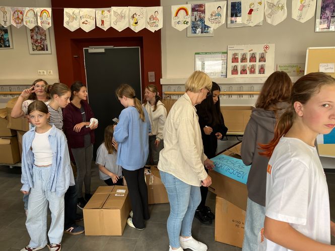 Unsere Schulfamilien haben erneut ihre Schränke geöffnet und Keller durchforstet. In Absprache mit der Hanauer Spendenhalle fahren daher alle Schulranzen, Rücksäcke, Taschen, Schlafsäcke, Decken, Isomatten sowie alles Schulmaterial Anfang Oktober mit einem großen Hilfstransport direkt in die Ukraine.