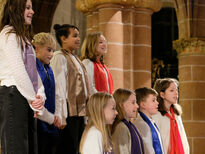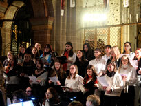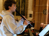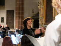 Anschließend sang der aus fast 50 Sängerinnen und Sängern bestehende große Schulchor unter der Leitung von Musiklehrerin Barbara Kupfer-Baumert den Kanon Ich will den Herrn loben von Georg Philipp Telemann. In dem darauffolgenden Stück Gloria in excelsis Deo, komponiert von Kirchenmusiker Carsten Klomp, entfaltete der Chor seine ganze Stimmgewalt und majestätisch erklangen im Fritzlarer Dom die Worte „Ehre sei Gott in der Höhe!“