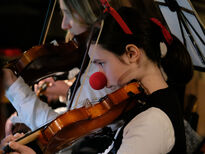 Nach diesem Klangerlebnis folgte ein besinnlicher Teil, in dem der Unterstufenchor, ebenfalls geleitet von Barbara Kupfer-Baumert, traditionelle Advents- und Weihnachtslieder (Hört der Engel helle Lieder, Fröhliche Weihnacht überall) vortrug und durch seinen harmonischen Gesang bei den Zuschauern eine andächtige und adventliche Stimmung erzeugte. Beide Chöre wurden virtuos von den Musiklehrerinnen Stephanie Schwarz am Klavier und Nadezhda Ivanova-Pittner am Cello begleitet.