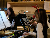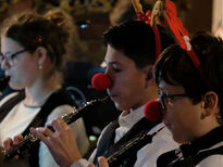Als das Schulorchester anschließend Rudolph the Rednosed Reindeer spielte, sorgten Lukas Achenbach (Tuba) sowie David Schmidt (Schlagzeug) und Noah Hartl (Percussion) für den nötigen Groove und begeisterten das Publikum, das sich mit einem frenetischen Applaus bedankte. Anschließend spielte das Orchester Pachelbel's Christmas. Die bekannte Melodie wurde abwechselnd von verschiedenen Holz- und Blechbläsern gespielt, sodass die Zuhörer die unterschiedlichen Klangfarben der Instrumente genießen konnten.