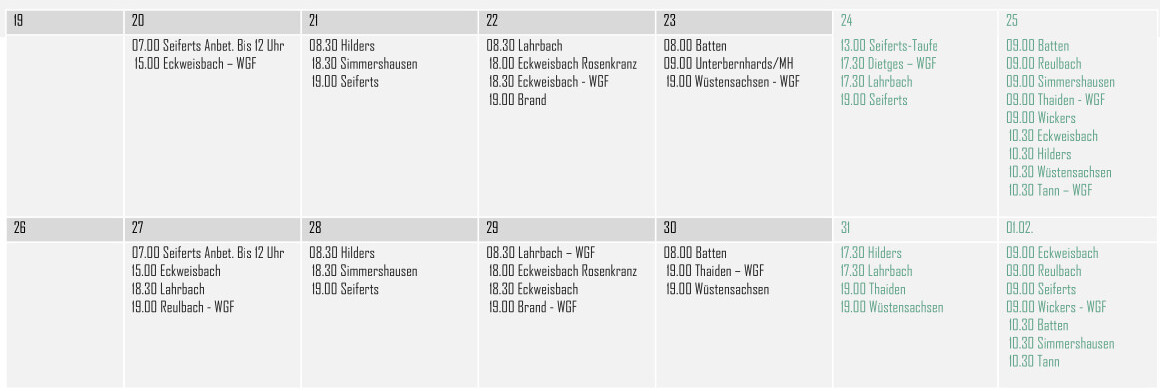 Der folgenden Aufstellung können Sie entnehmen, wann in den einzelnen Orten im Pastoralverbund Gottesdienste gefeiert werden.